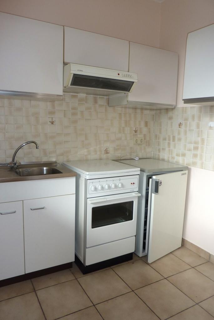 - d'une cuisine est équipée avec une gazinière et un réfrigérateur.
