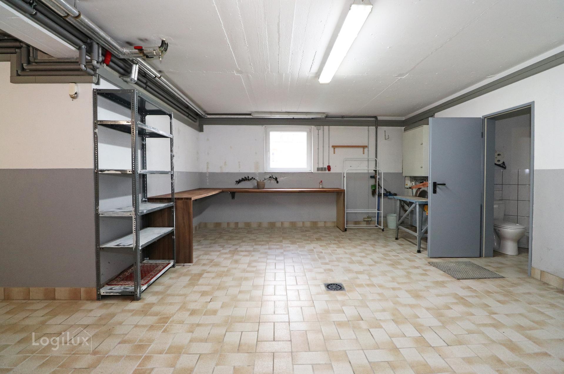 Sous-sol : atelier, garage pour au moins deux voitures, cave, cuisine d'été, WC séparé